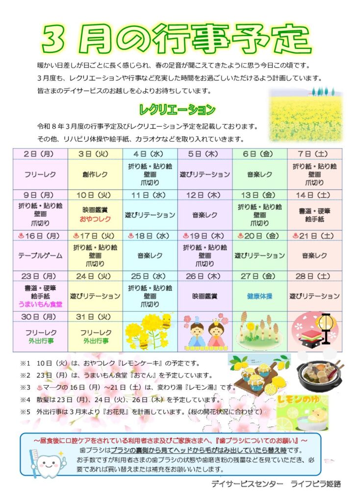 デイサービスR8.3月の予定表・空き情報