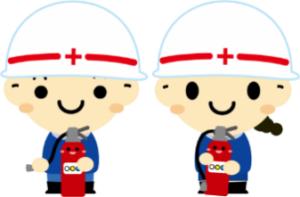 実際の火災を想定して、消火器を使用して初期消火を行います。