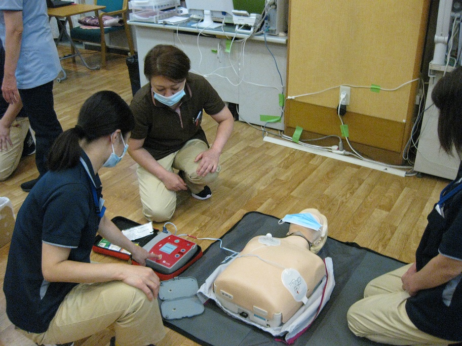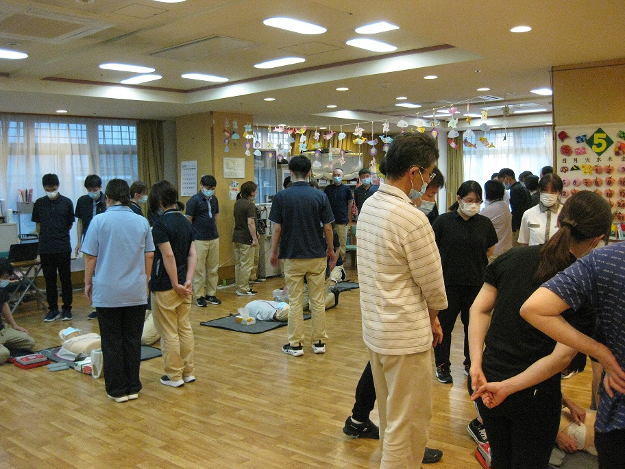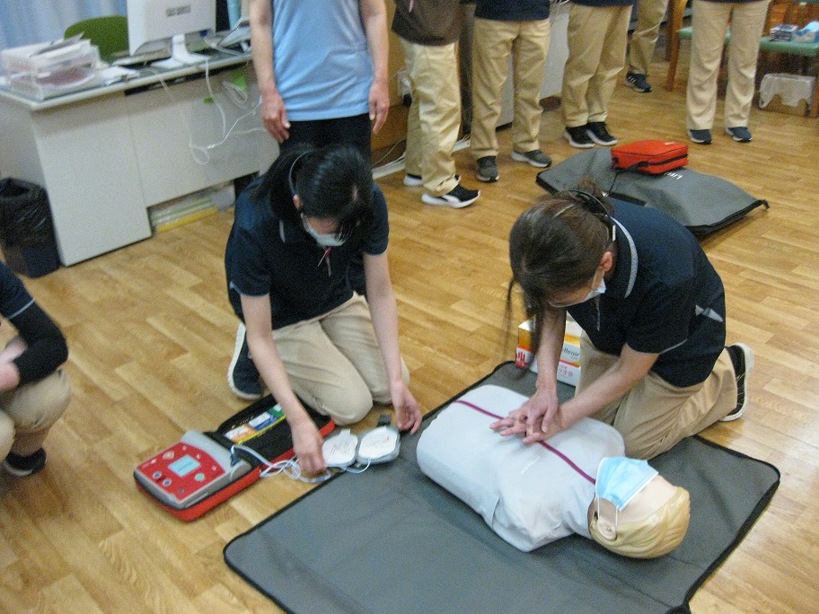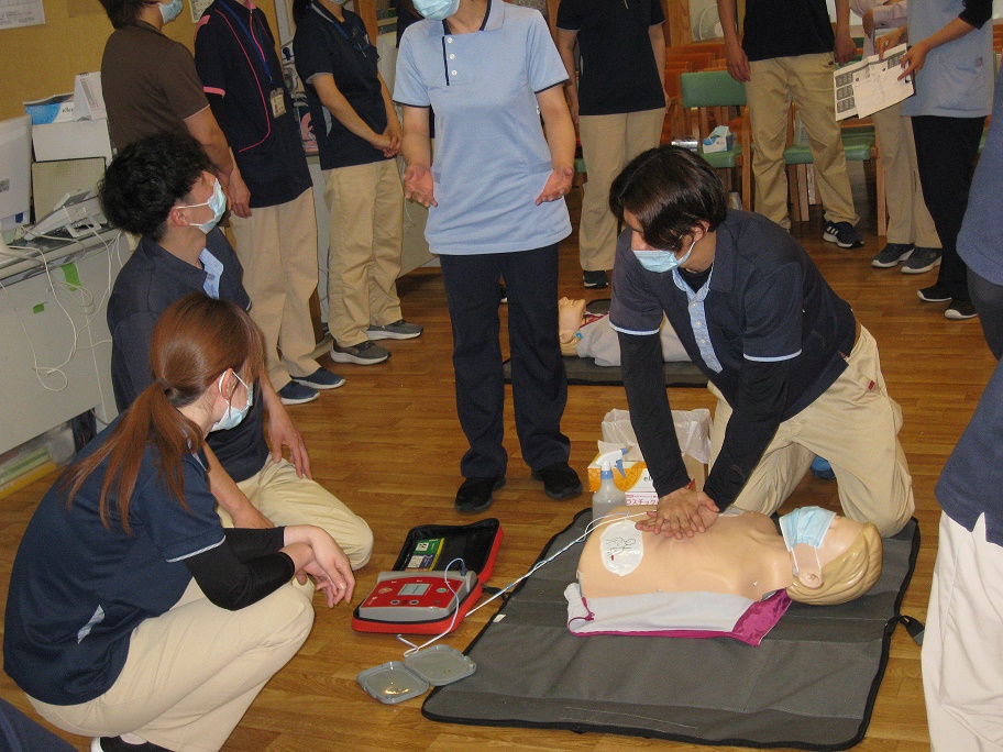 5月29日に全事業所が集まり、心肺蘇生法の研修を行いました。
