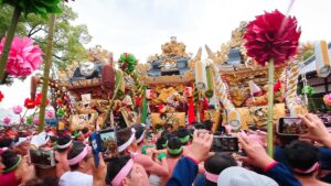 3台のけんか神輿が勇ましくぶつかり合います!