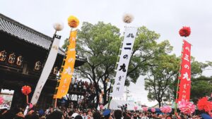 幟が祭りの雰囲気をさらに盛り上げていますね!