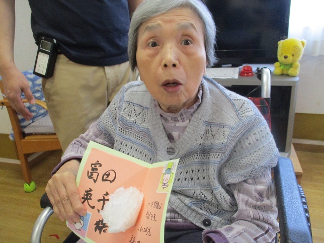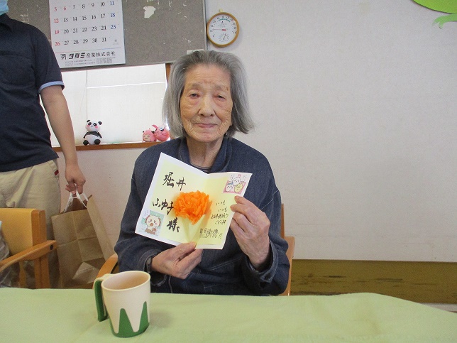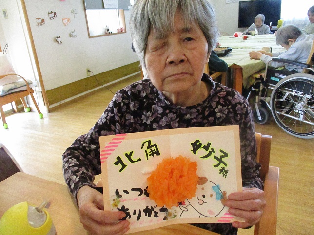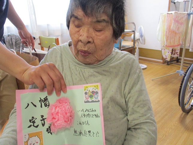 また別の日に、母の日が近いので職員が手作りメッセージカードをお渡ししました。