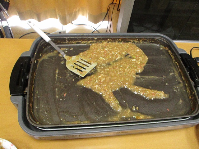 なので、鉄板焼きをして力をつけてもらおうと、もんじゃ焼きパーティーを開催しました😃