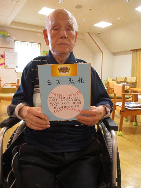 お贈りしたメッセージカードがなぜ野球ボールかというと、男性陣は阪神タイガースの大ファン!関西ですね~♪