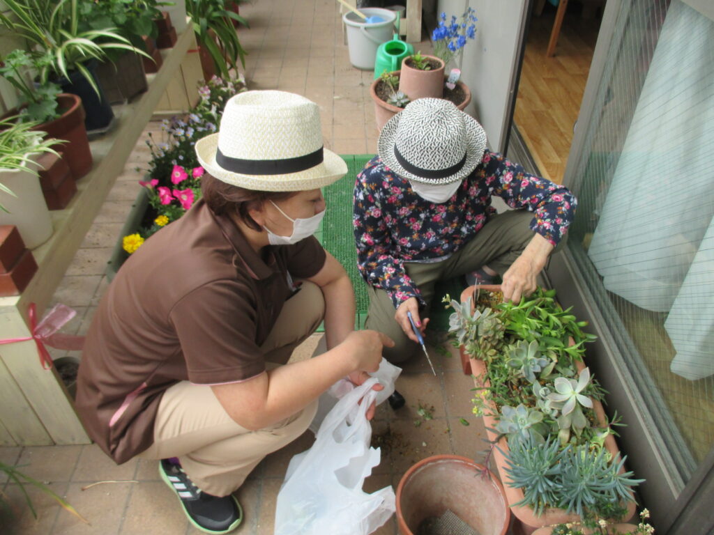 デイサービス6月行事予定(写真はデイサービスの園芸クラブの風景です。)