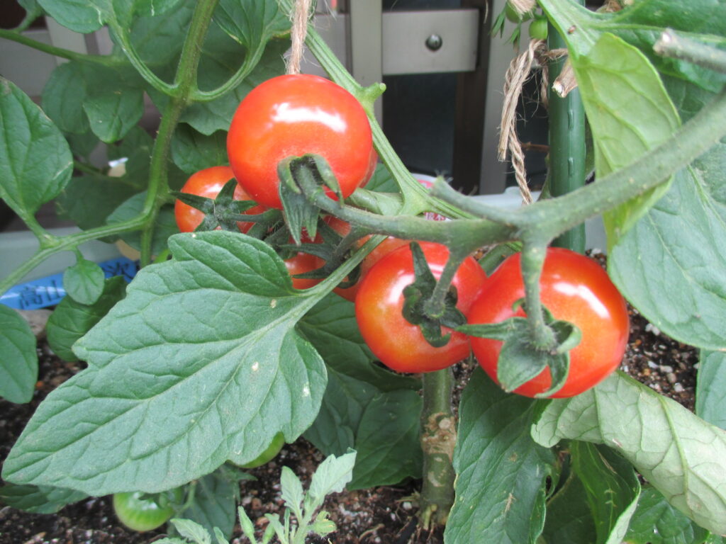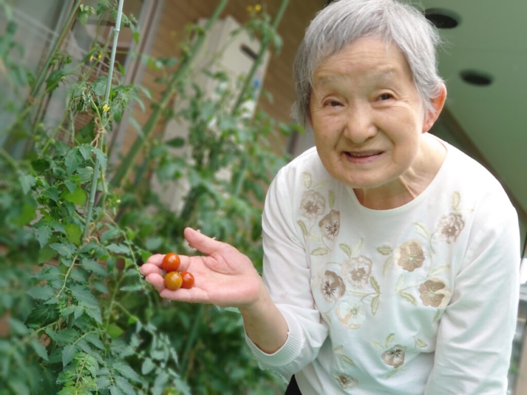 デイサービス7月行事予定(写真は園芸クラブで収穫したトマトです。)