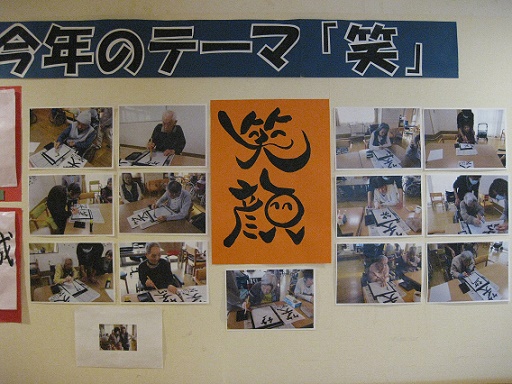 デイサービス4月行事予定(写真は展示会作品の制作風景です。)