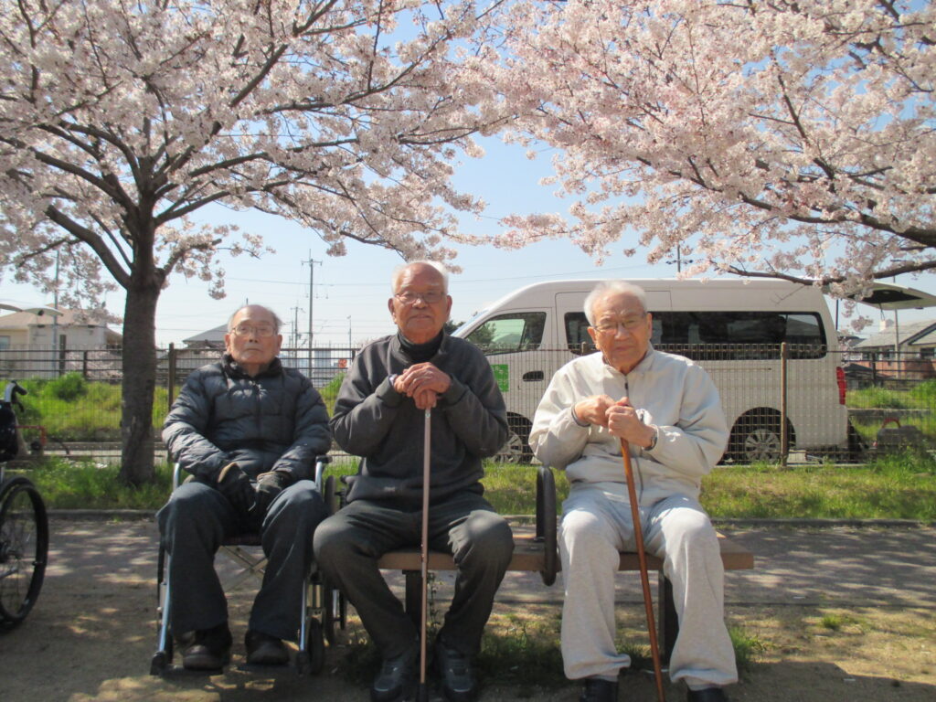 デイサービス5月行事予定(写真は花見ドライブの風景です。)