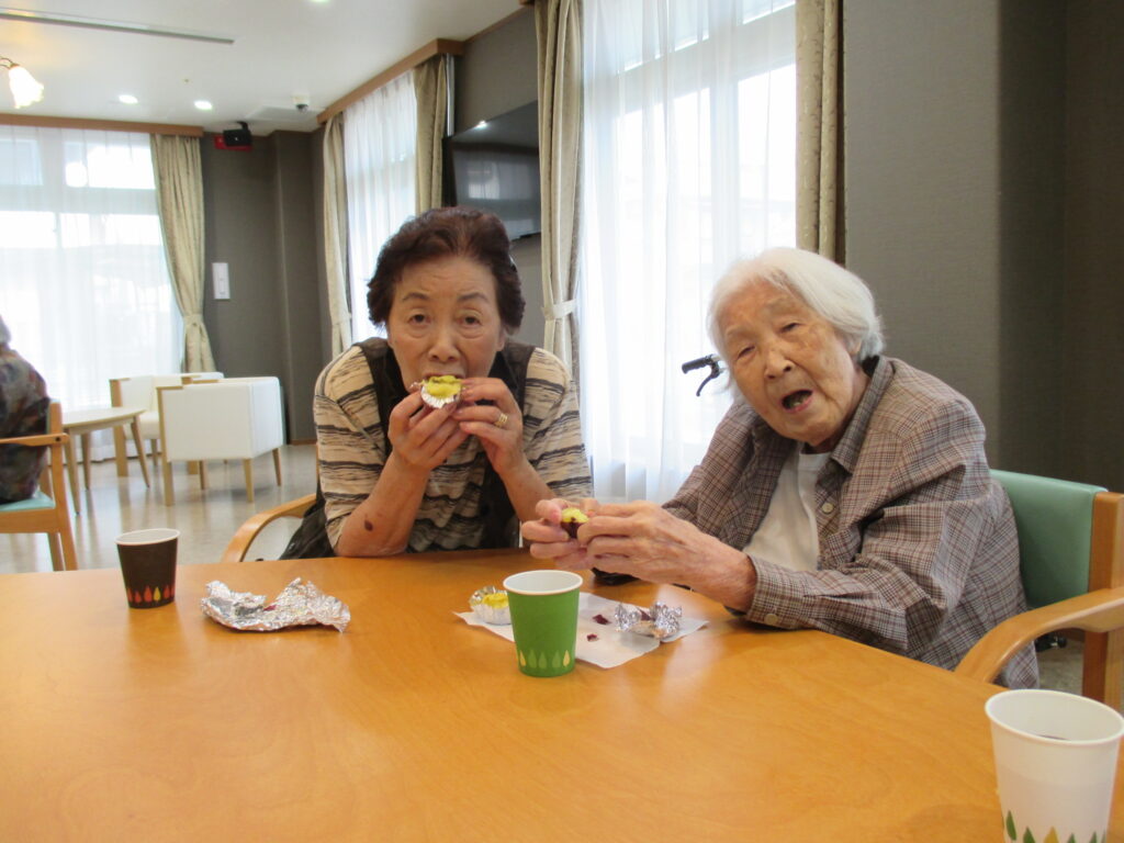 デイサービス10月行事予定(写真は「秋の焼き芋祭り」のイベント風景です。