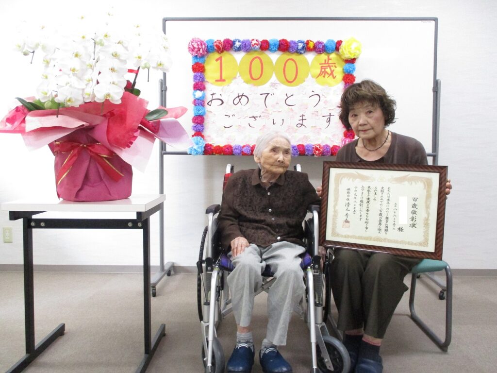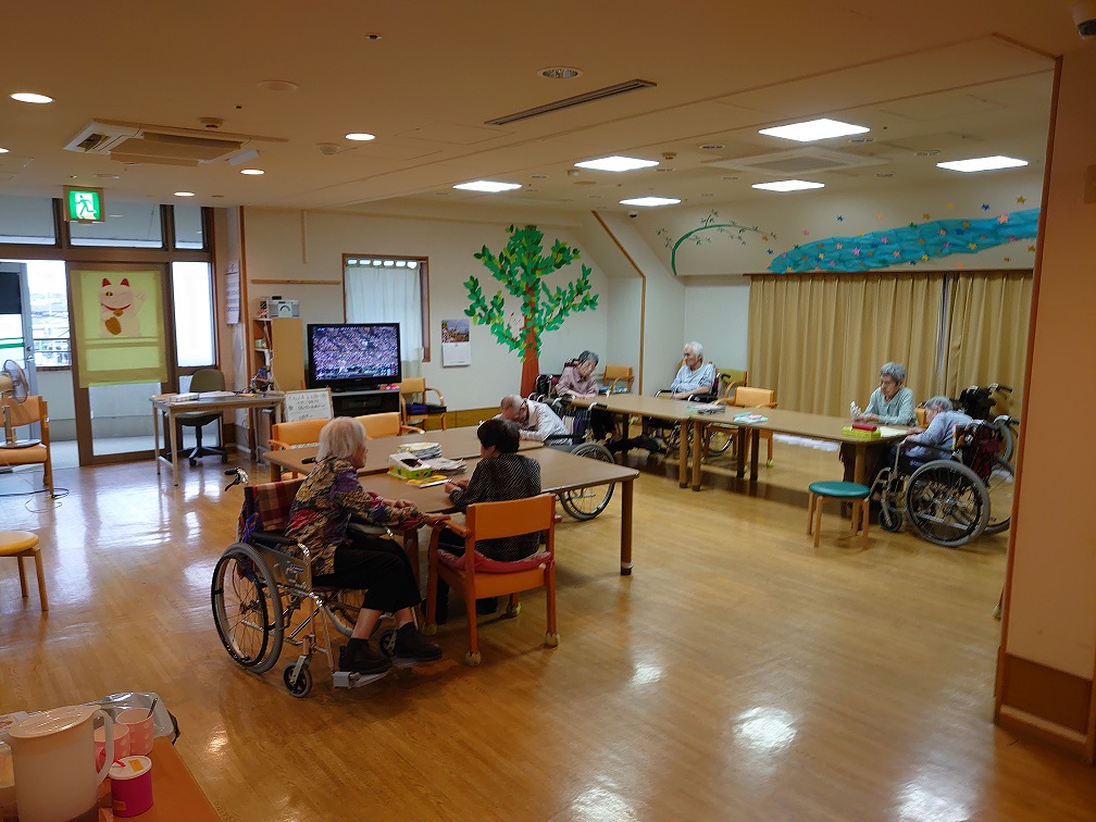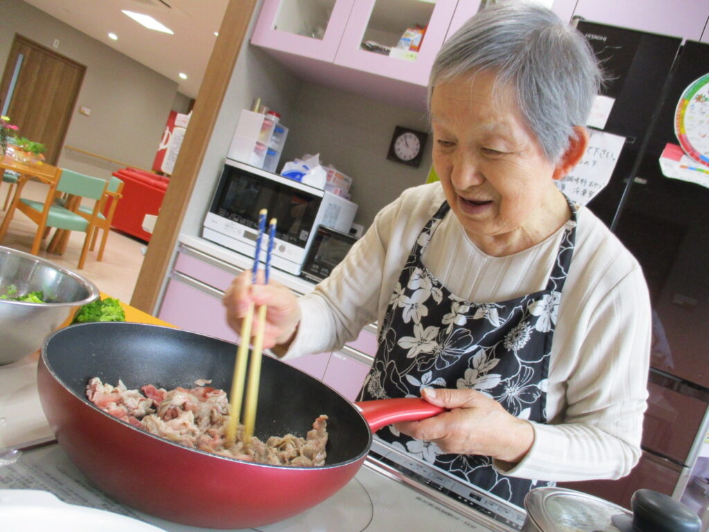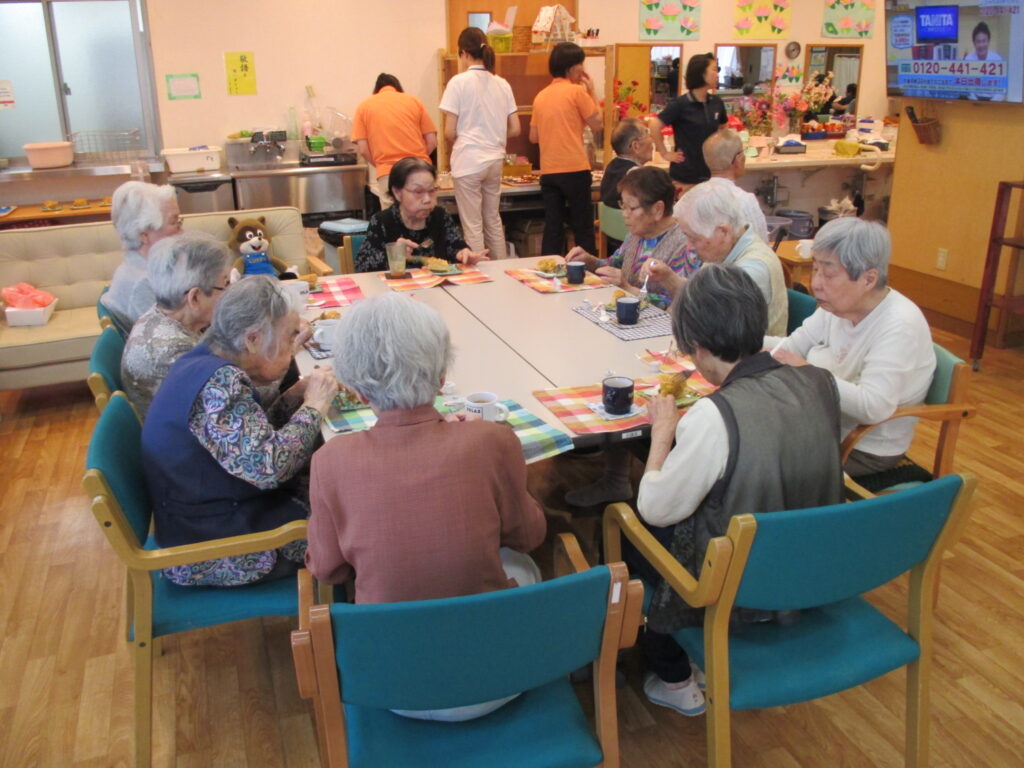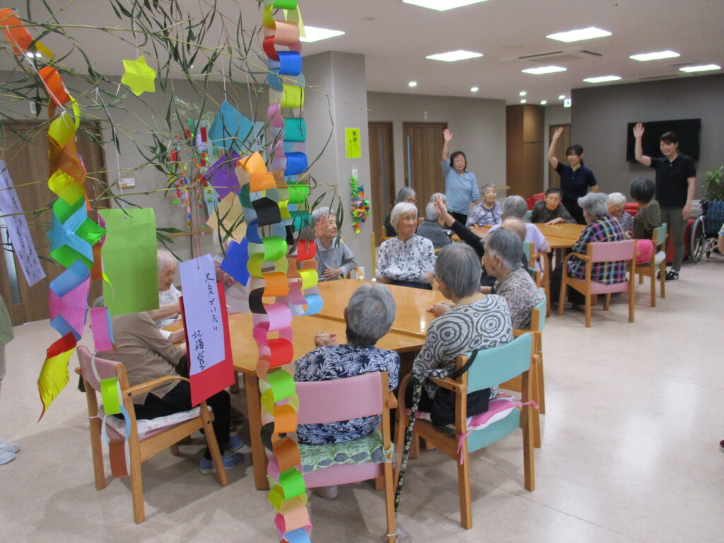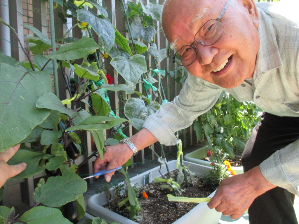 デイサービス7月行事予定(写真は園芸クラブで育てた茄の収穫風景です)