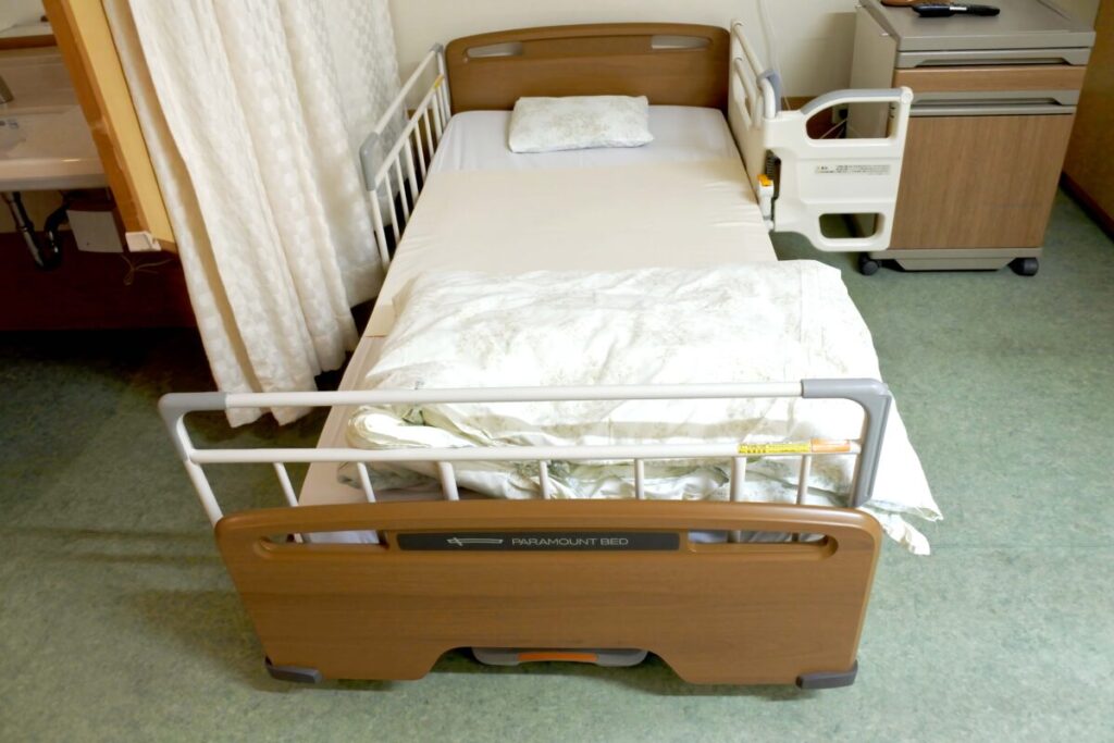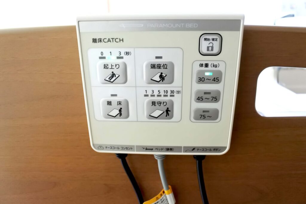全室にベッド内蔵型離床センサー付き電動ベッドを設置しています。