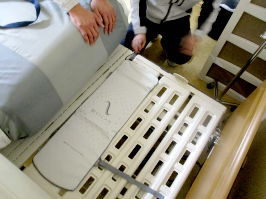 睡眠計測センサーは、ベッドマットレスの下に敷いて体動(寝返り、心拍、呼吸など)を検出する、非装着、非侵襲のセンサーです。