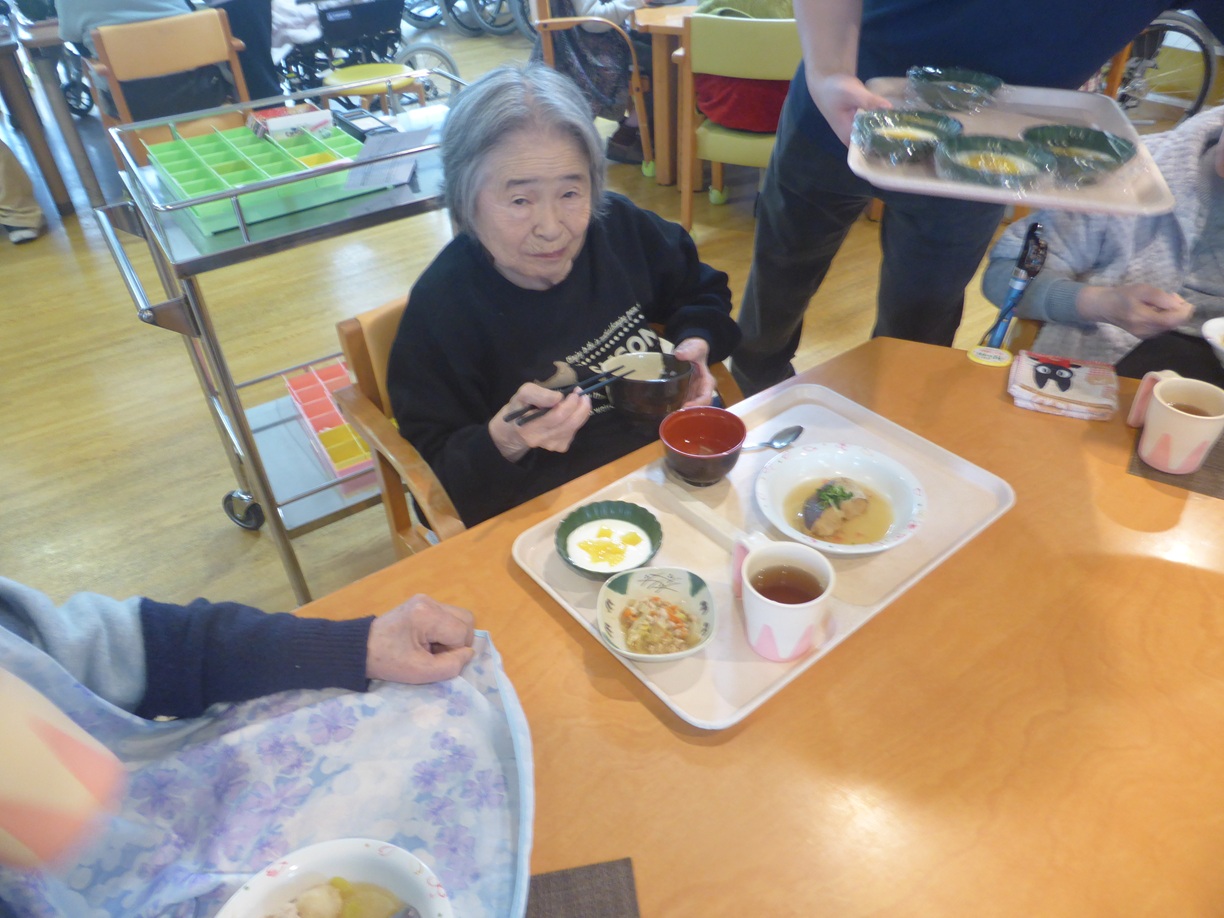 昼食ではお鍋、おやつではケーキを提供し、皆さん美味しいと召し上がられていました。